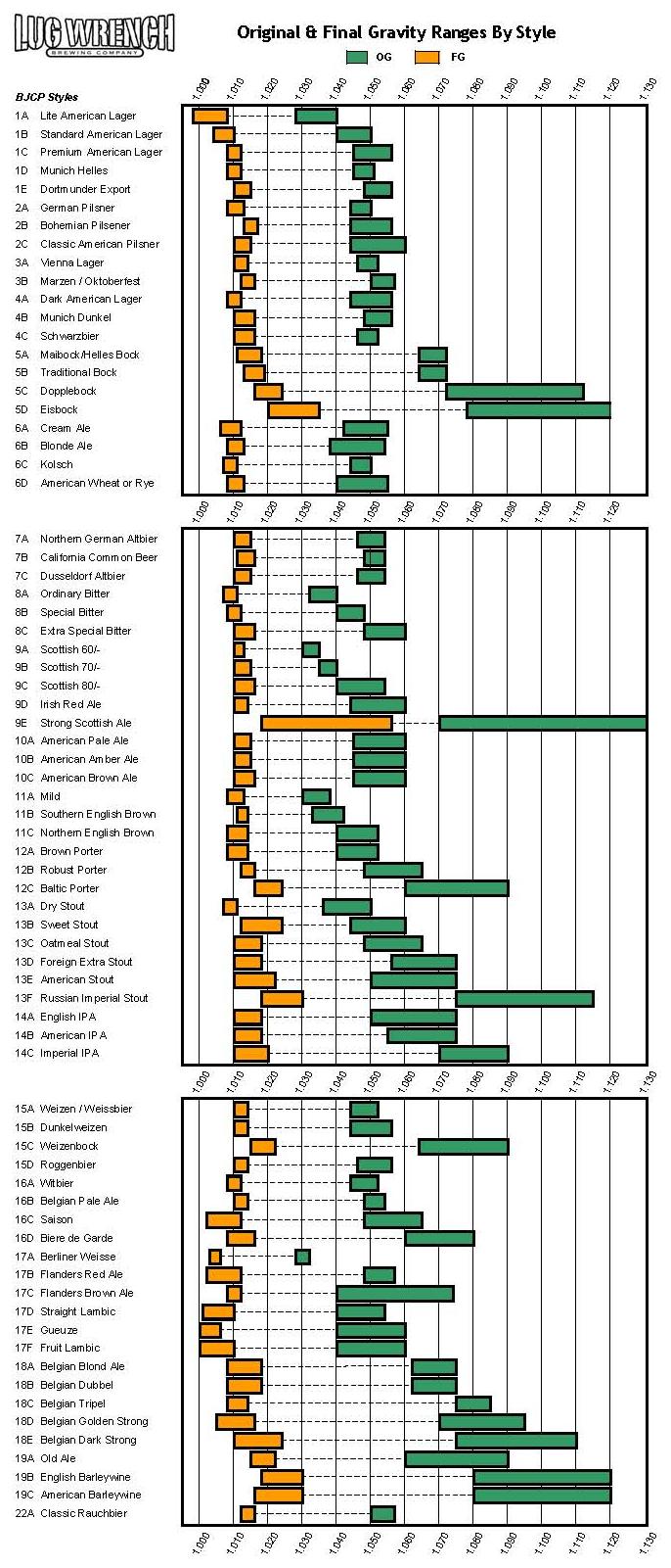 Beer Brewing: Original & Final Gravity Ranges by BJCP Styles (2008) [OC]