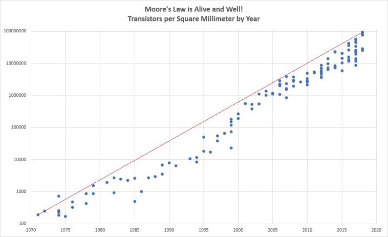 Data visualization : Chart showing that Moore’s law is still in effect.