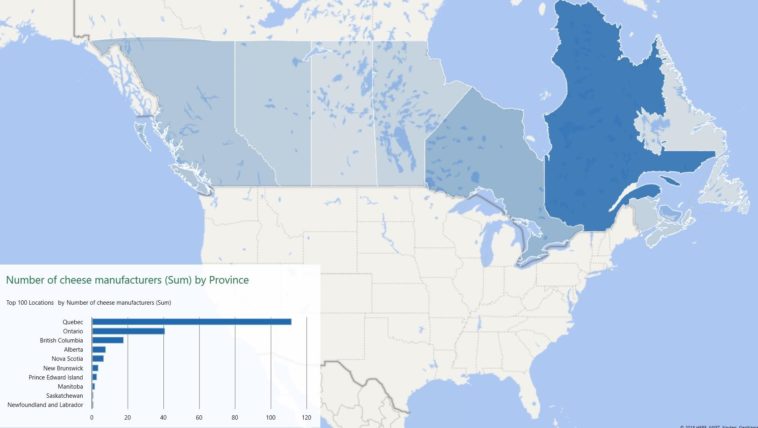 Data visualization : Cheese manufacturers in Canada by province [OC]