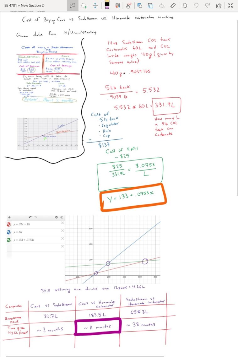 Cost of buying cans of seltzer vs building homemade co2 carbonator [OC] (Piggybacking off u/Uranusmonkey and his data)