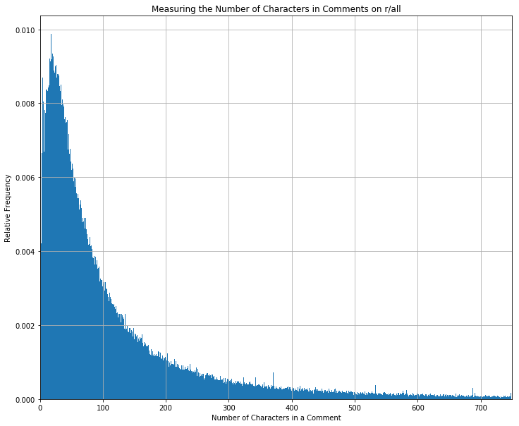 Data visualization : Distribution of the Amount of Characters in r/all Comments [OC]