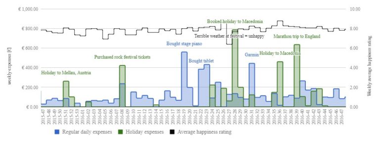 Data visualization : Does spending money actually make me happier? Analyzing €60.000 over 3 years [OC]