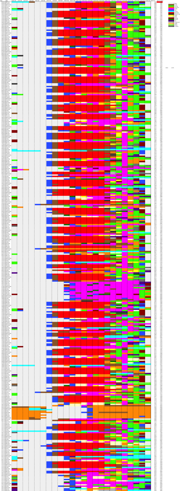 Data visualization : Every Hour of my 2018 recorded [OC]