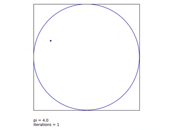 First 10’000 iterations of a Monte Carlo simulation to determine pi [OC]