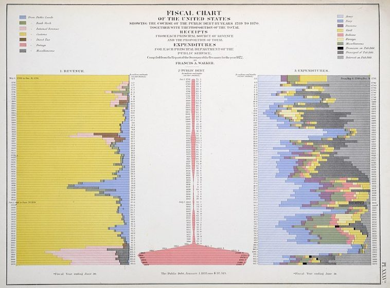 Data visualization : Fiscal Chart of the United States 1789 to 1870 by Francis Walker (1874)