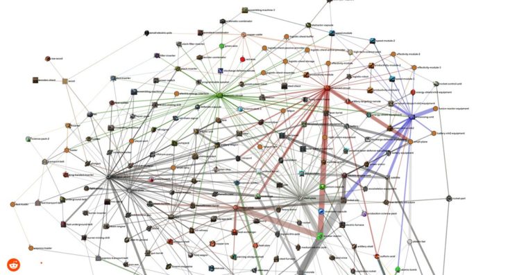 Force directed graph of Factorio recipes