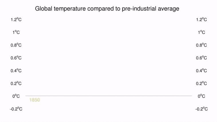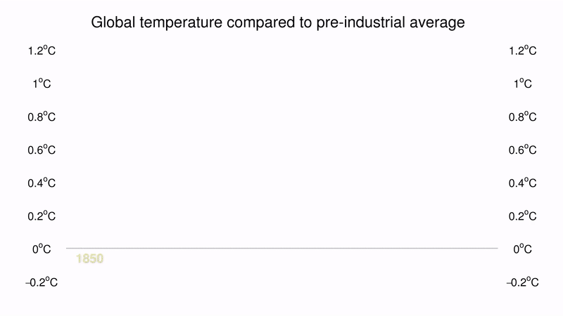 Data visualization : Global temperature 1850 to 2018 compared to pre-industrial values [OC]