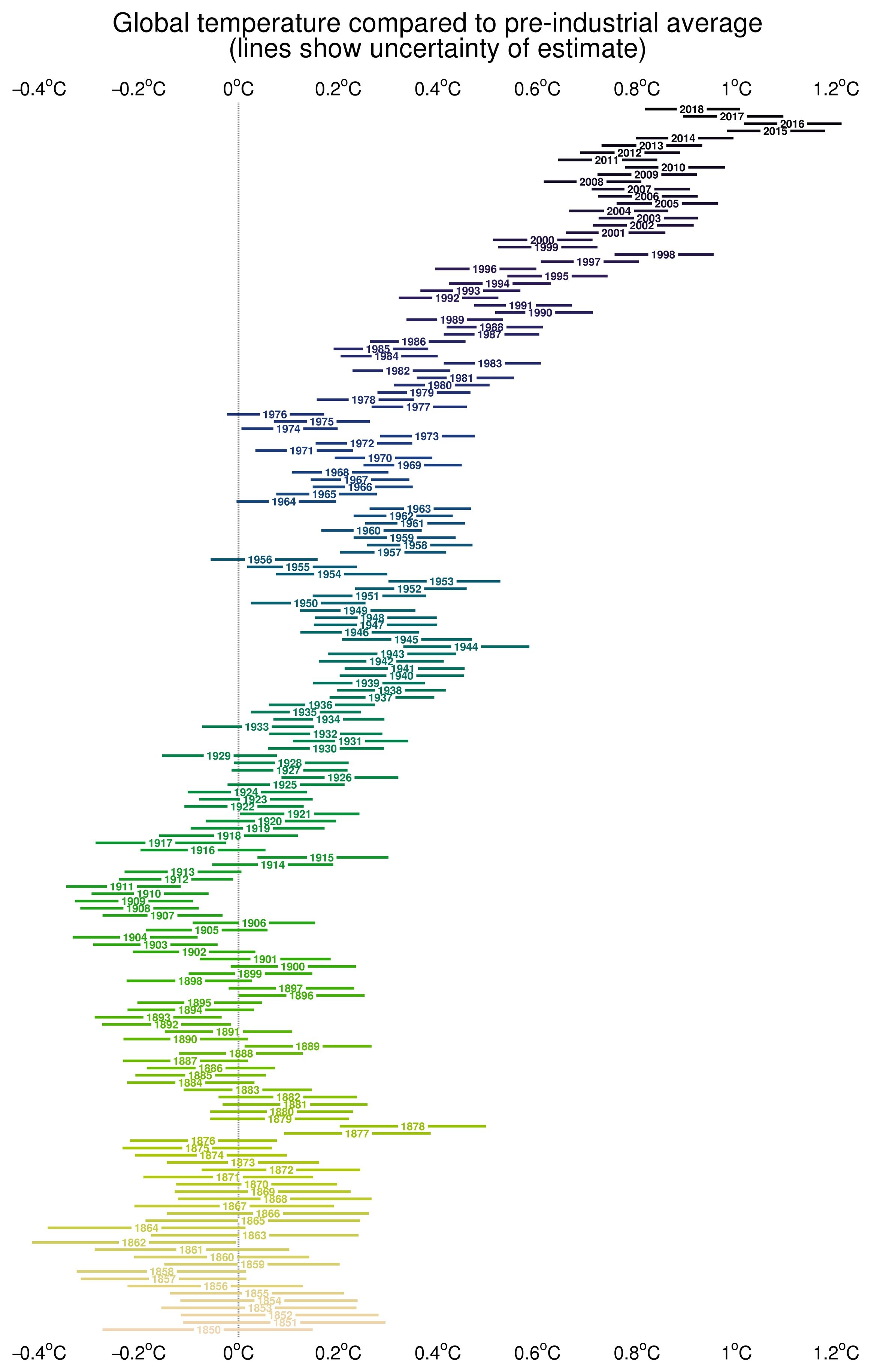Data visualization : Global temperature compared to pre-industrial value since 1850 [OC]