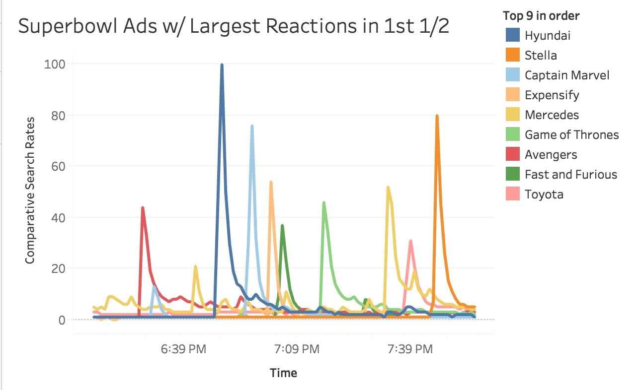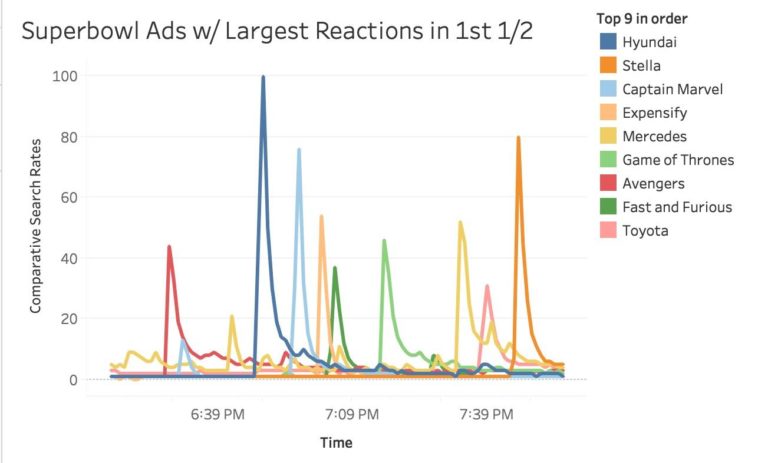 Data visualization : Google Search traffic for first half Super Bowl ads [OC]