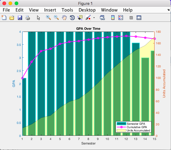 Data visualization : GPA over 15 Semesters (MATLAB) [OC]
