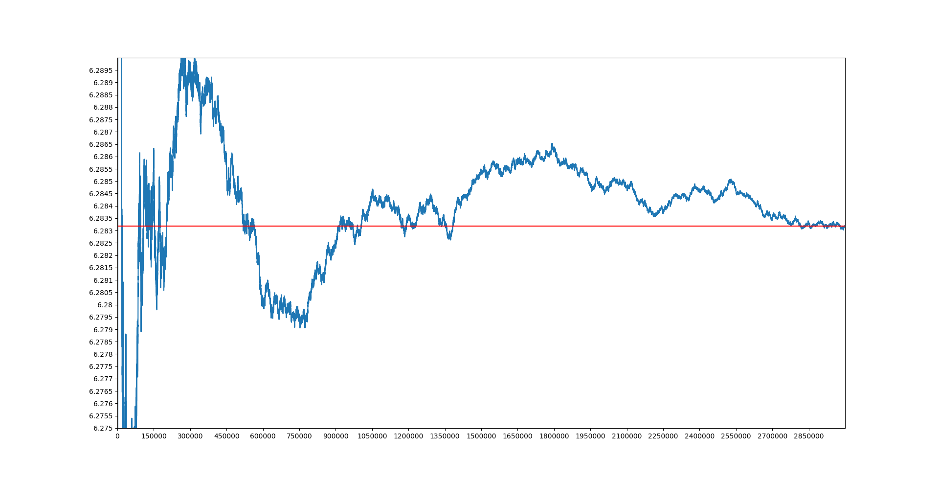 Graph of tau estimation against Monte Carlo iterations [OC]