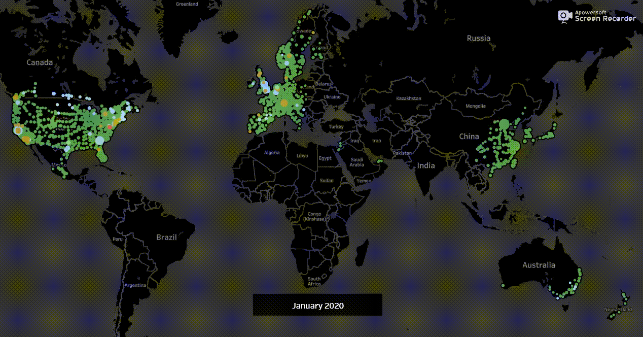data visualization : Growth of the Tesla supercharger – Nov 2012 to Feb 2019 [OC]