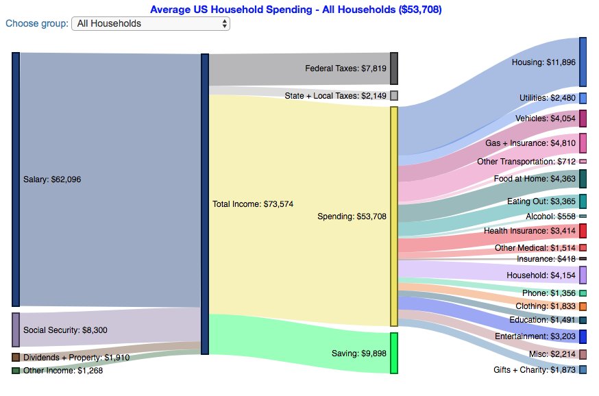 Data visualization : Household Income and Spending Sankey Diagram – US Averages by Income Group [OC]