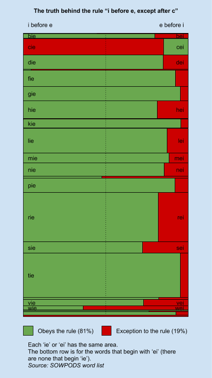 Data visualization : “i before e, except after c” – visualizing the English words that obey and break the rule [OC]