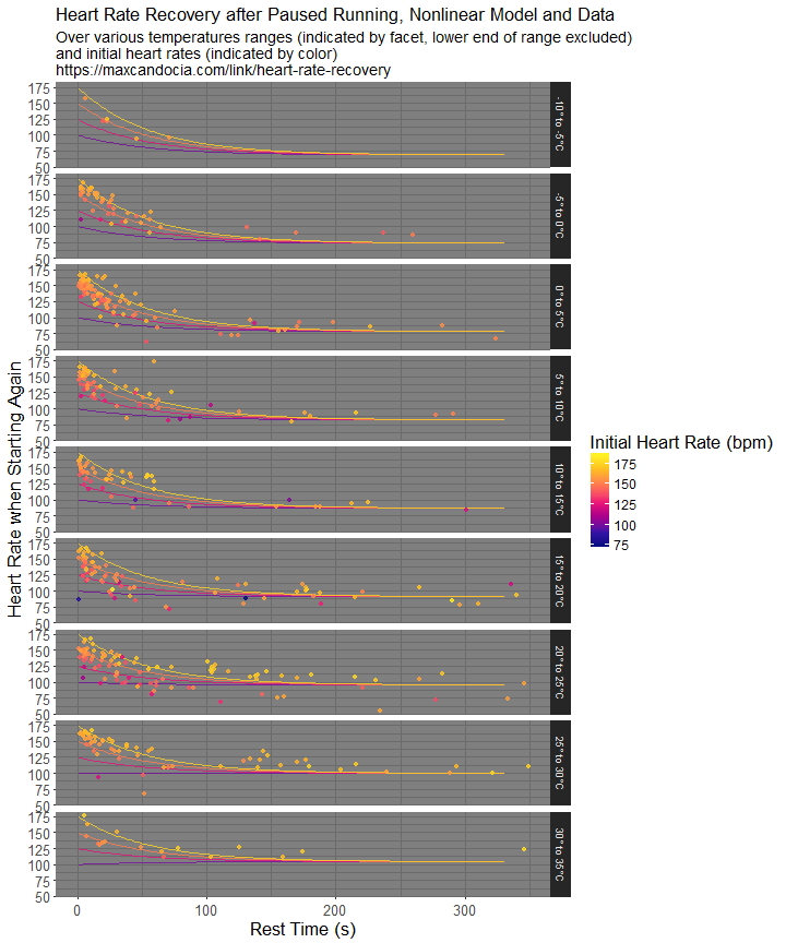 I modeled my heart rate recovery from running over various temperature ranges [OC]