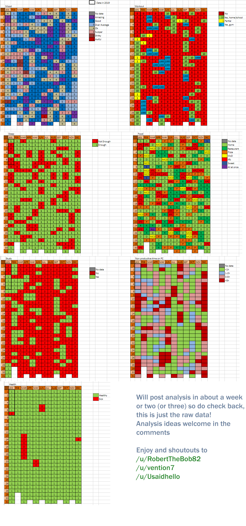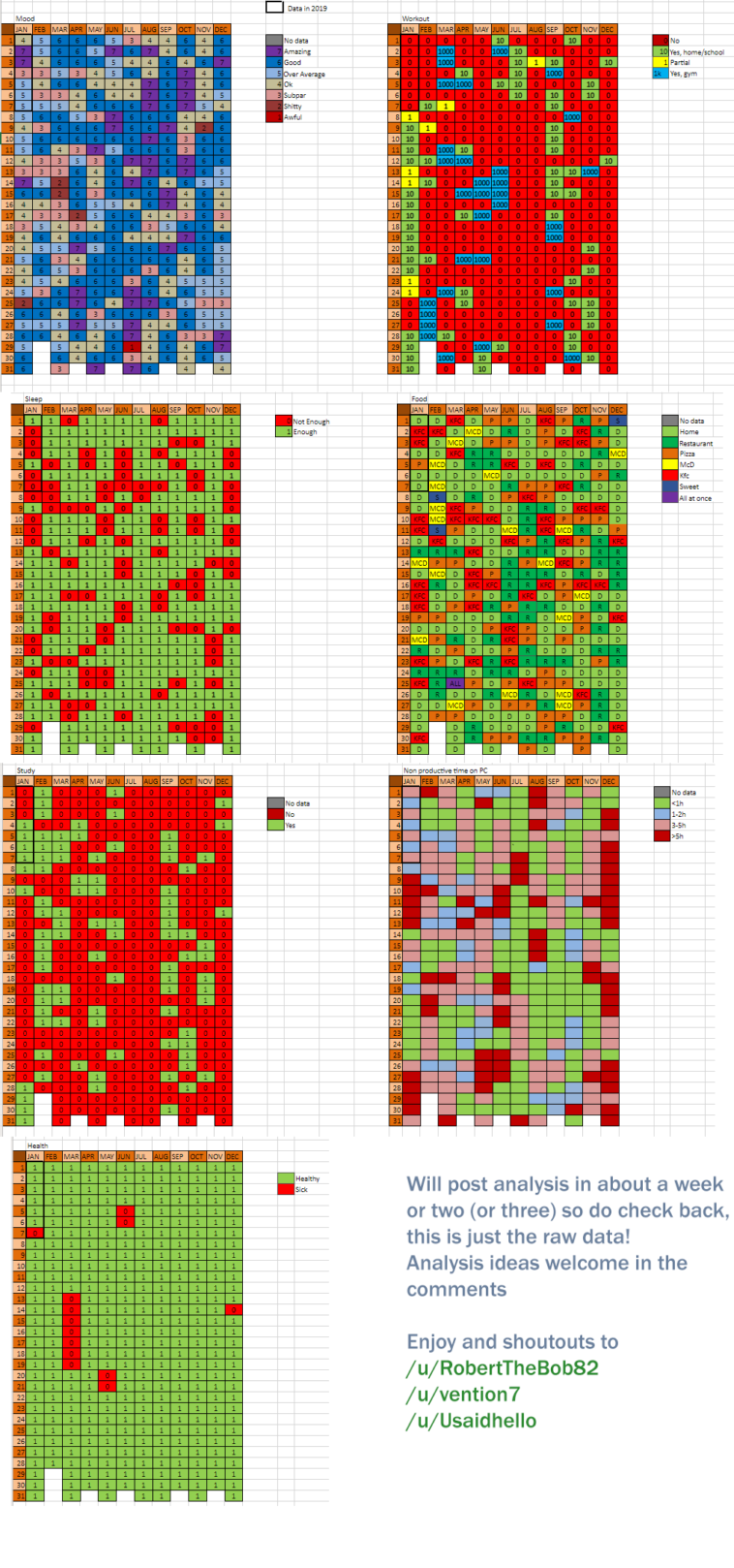 Data visualization : I rated my day and a couple of other factors every day for the past year [OC]