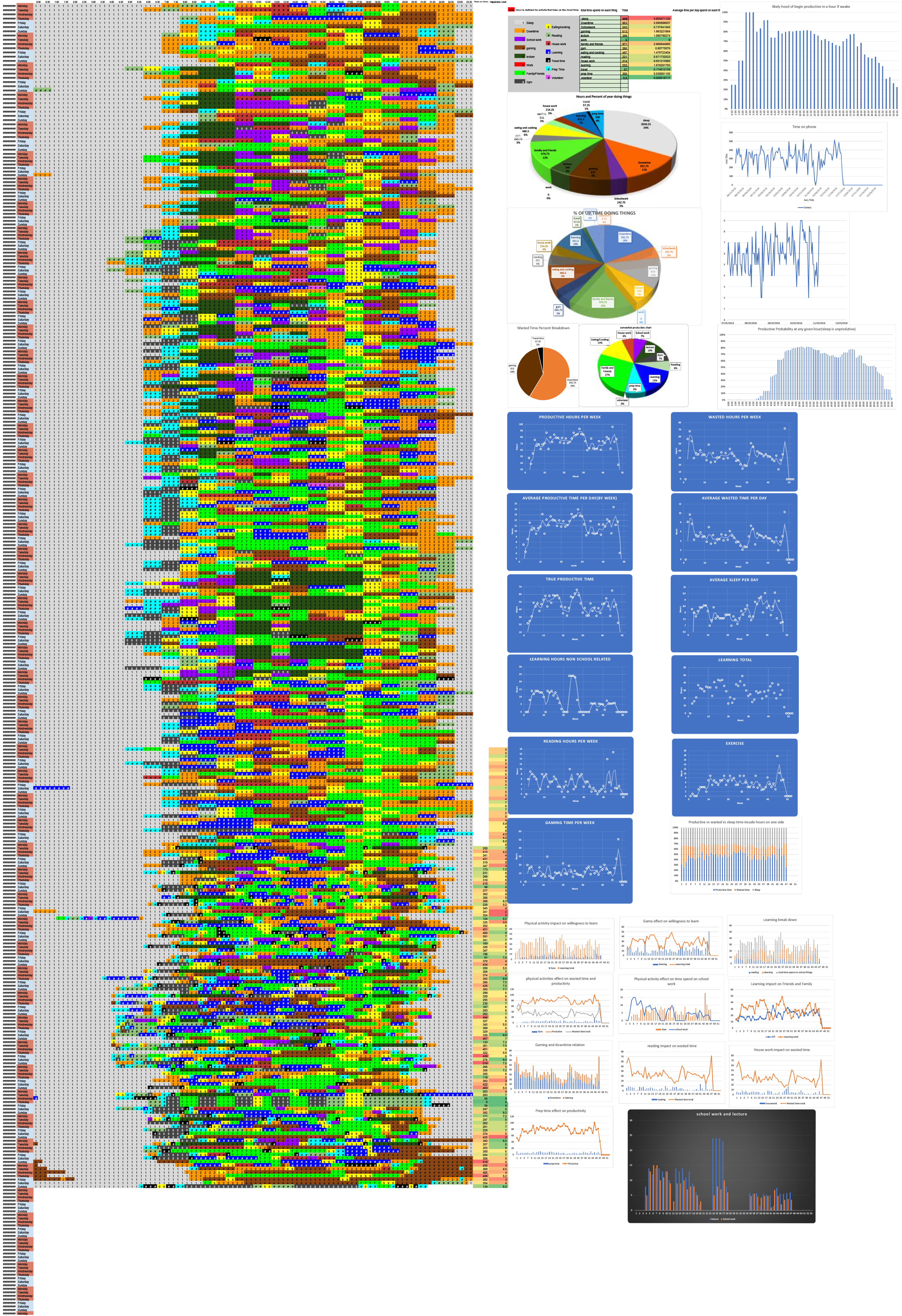 data visualization : I Recorded “Every” Hour of 2018 (well most of it) [OC]