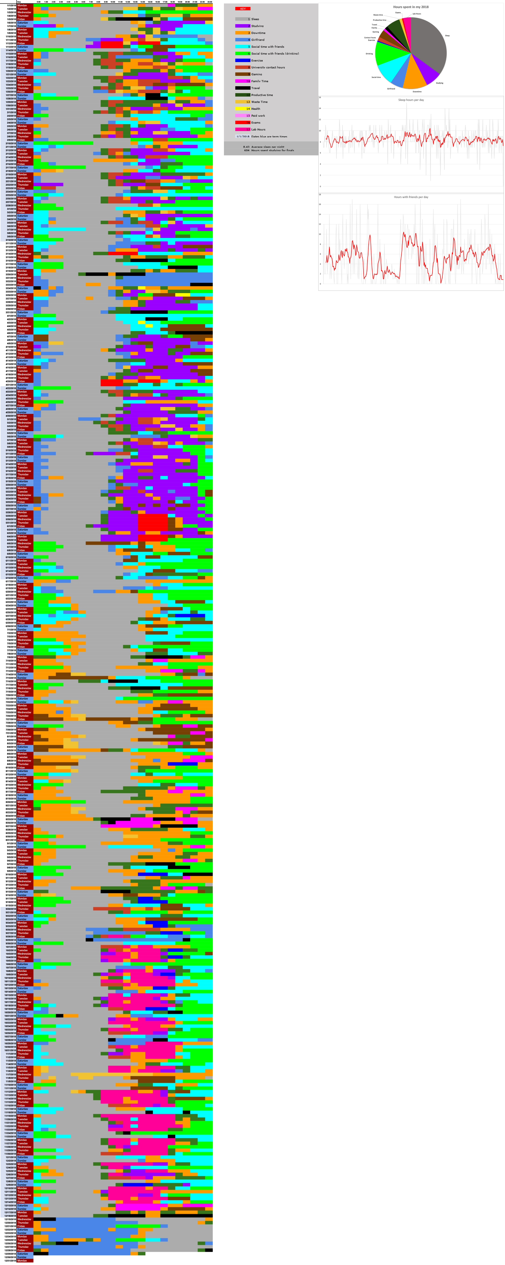 I Recorded Every Hour of My 2018 [OC]
