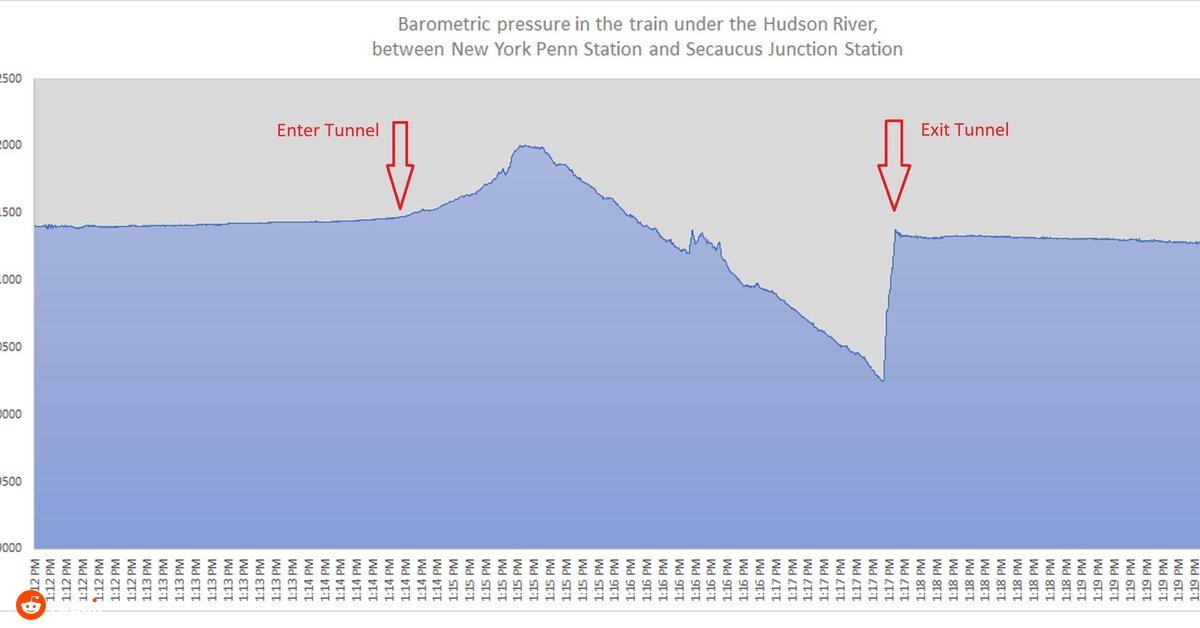 Data visualization : I recorded the pressure when going under the Hudson River on the NJT Train, and it correlates to my ears popping.
