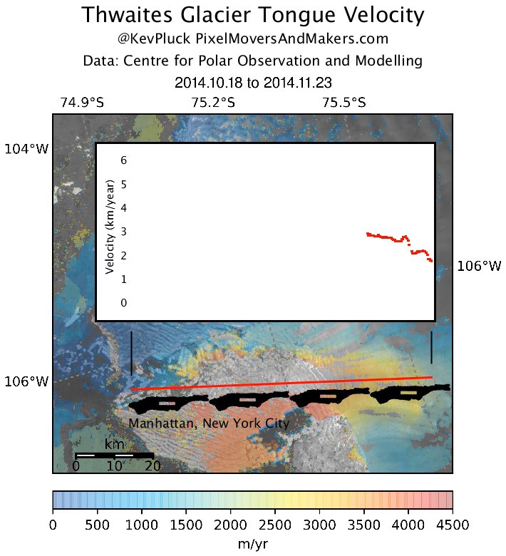 data visualization : Ice tongue velocity of the Antarctic Thwaites glacier [OC]