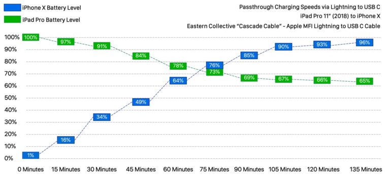 iPad Pro Passthrough Charging to iPhone X Charging Speeds [OC]