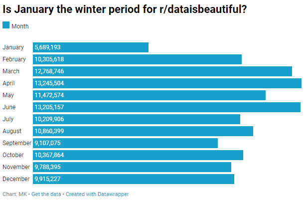 Data visualization : Is January the winter period for r/dataisbeautiful [OC]