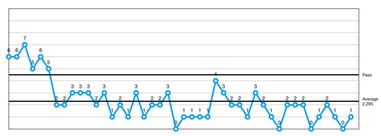 Data visualization : I’ve plotted all of my driving theory test results until the final exam [OC]