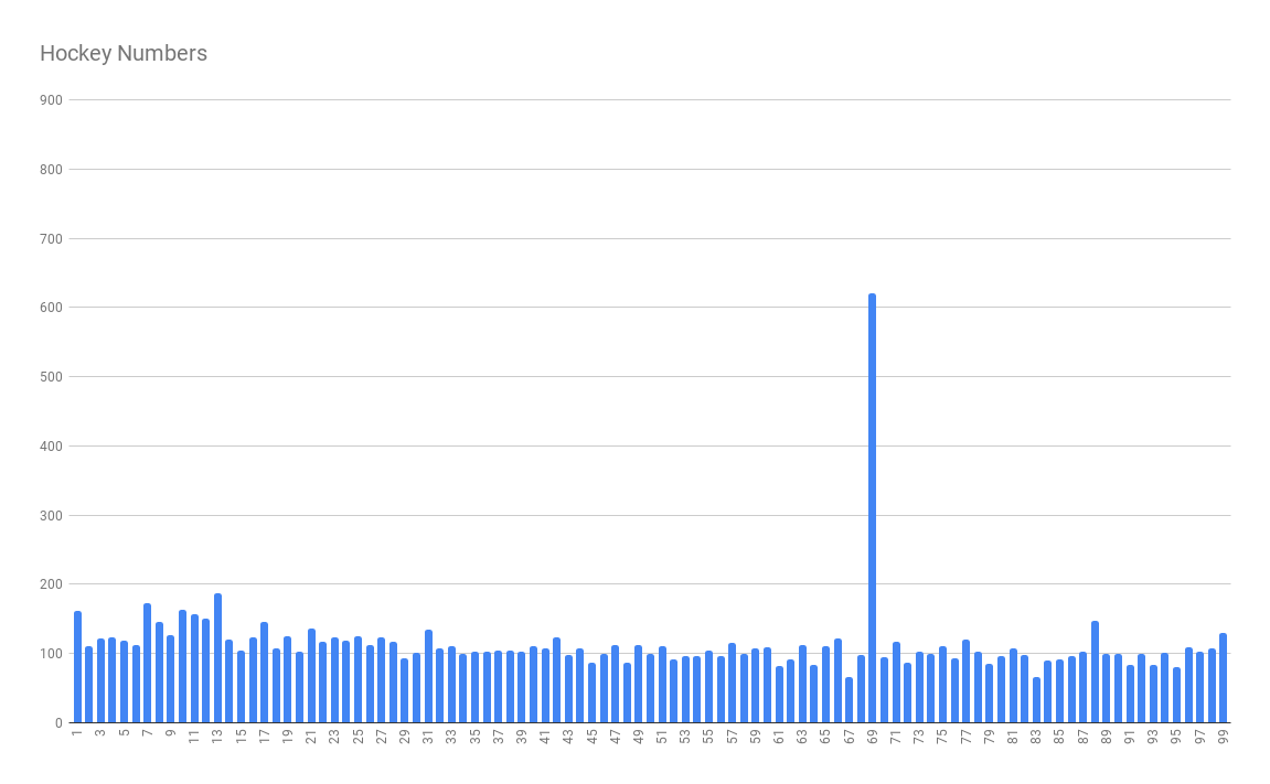 Data visualization : Just released a hockey game on Steam where you can pick your player number. Here are the results. [OC]