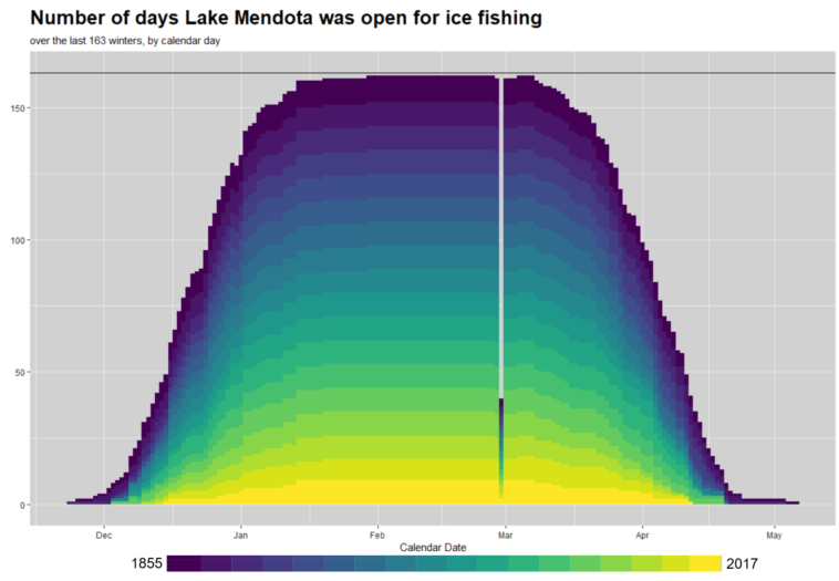 Data visualization : Lake Mendota’s ice season is shortening [OC]