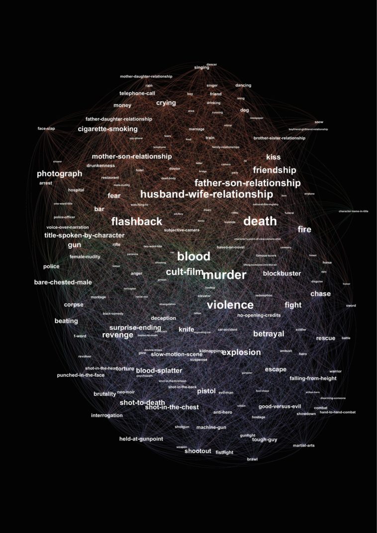 Data visualization : Landscape of most popular IMDb Plot Keywords for the Top 250 movies [OC]