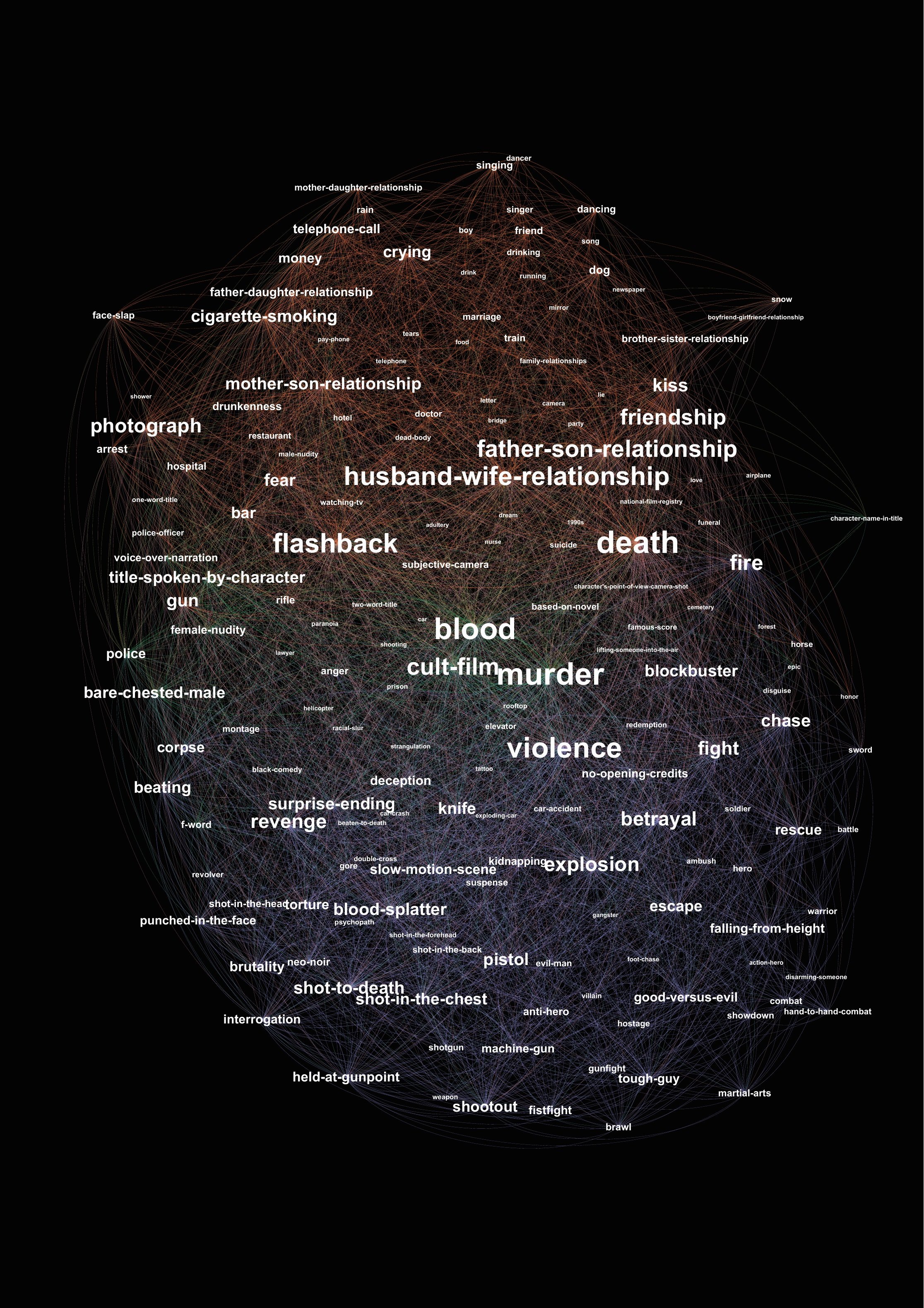 Landscape of most popular IMDb Plot Keywords for the Top 250 movies [OC]