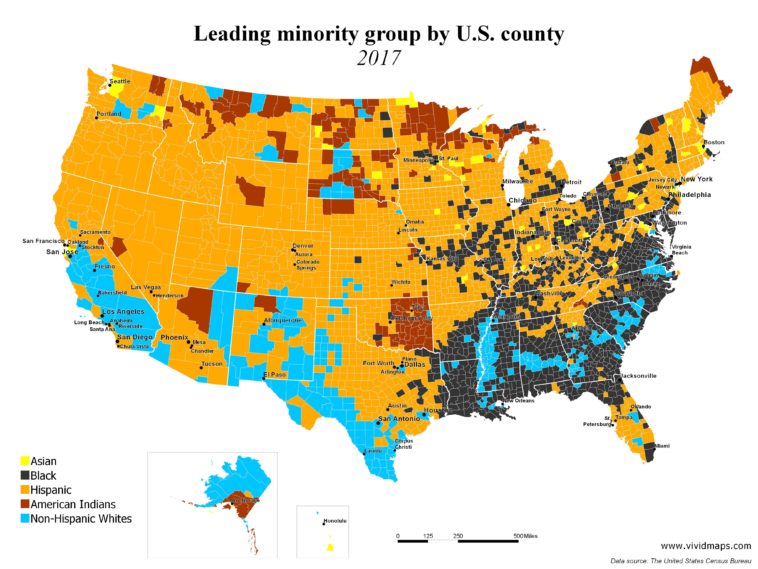 Data visualization : Leading minority group by U.S. county (1990 – 2017) [OC]