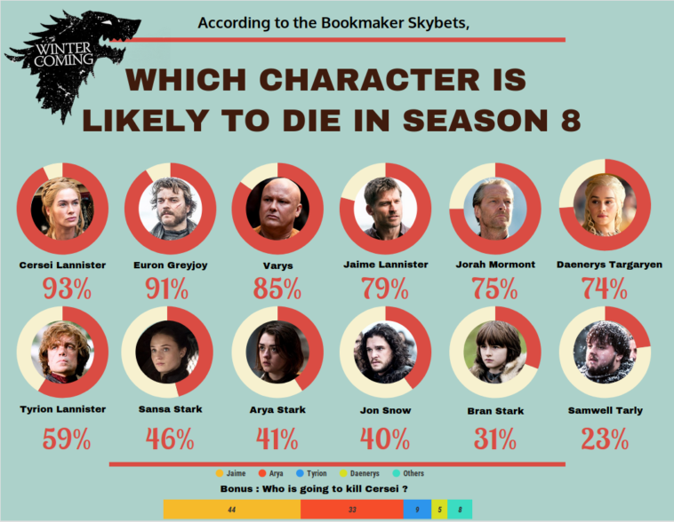 Data visualization : Likeliness to die in the final season of GOT [OC]