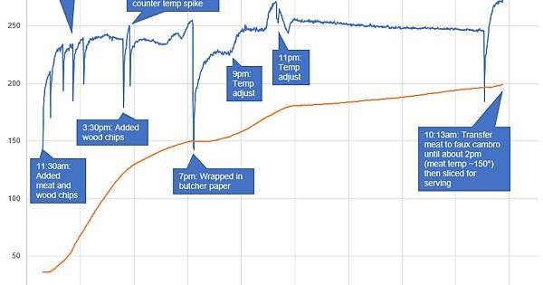 data visualization : Meat vs Smoker temperature on a whole packer 17lb brisket
