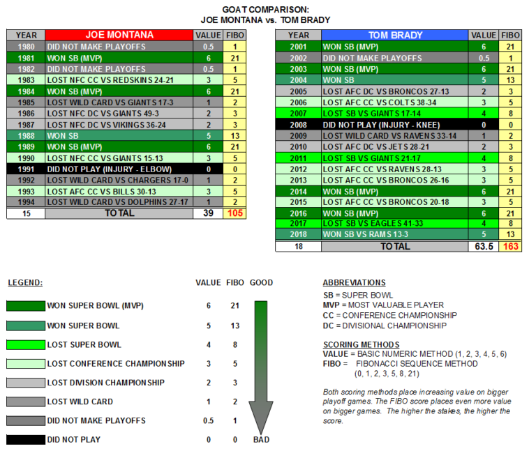 Montana vs. Brady GOAT Quarterback Comparison, 2018 Update [OC]
