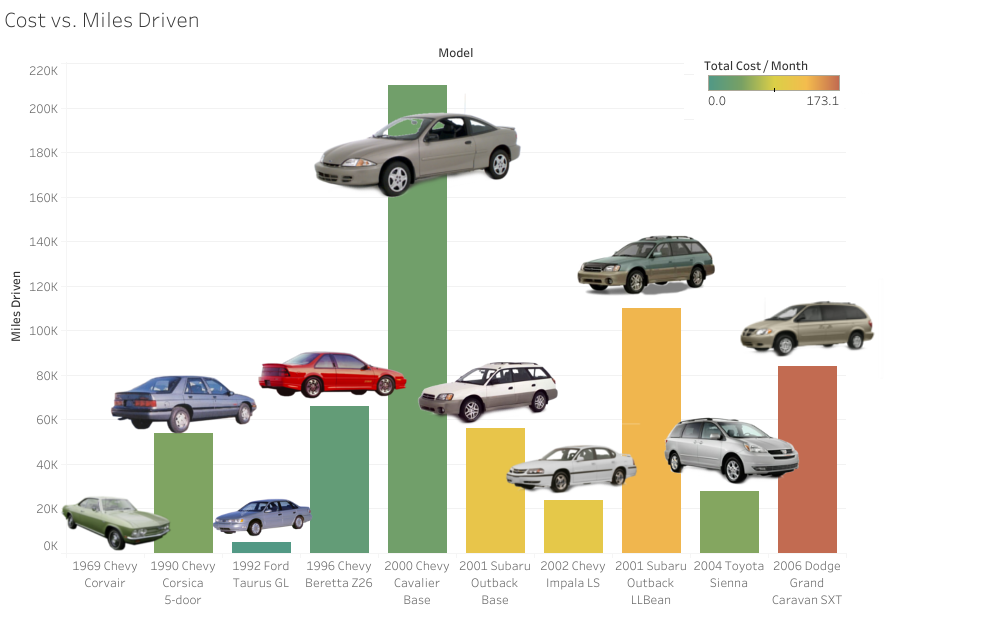 Data visualization : Monthly Cost of My Vehicles [OC]