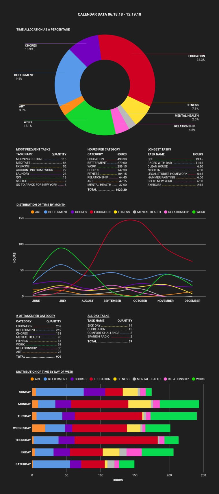 data visualization : My Calendar Data from the Past Six Months [OC]