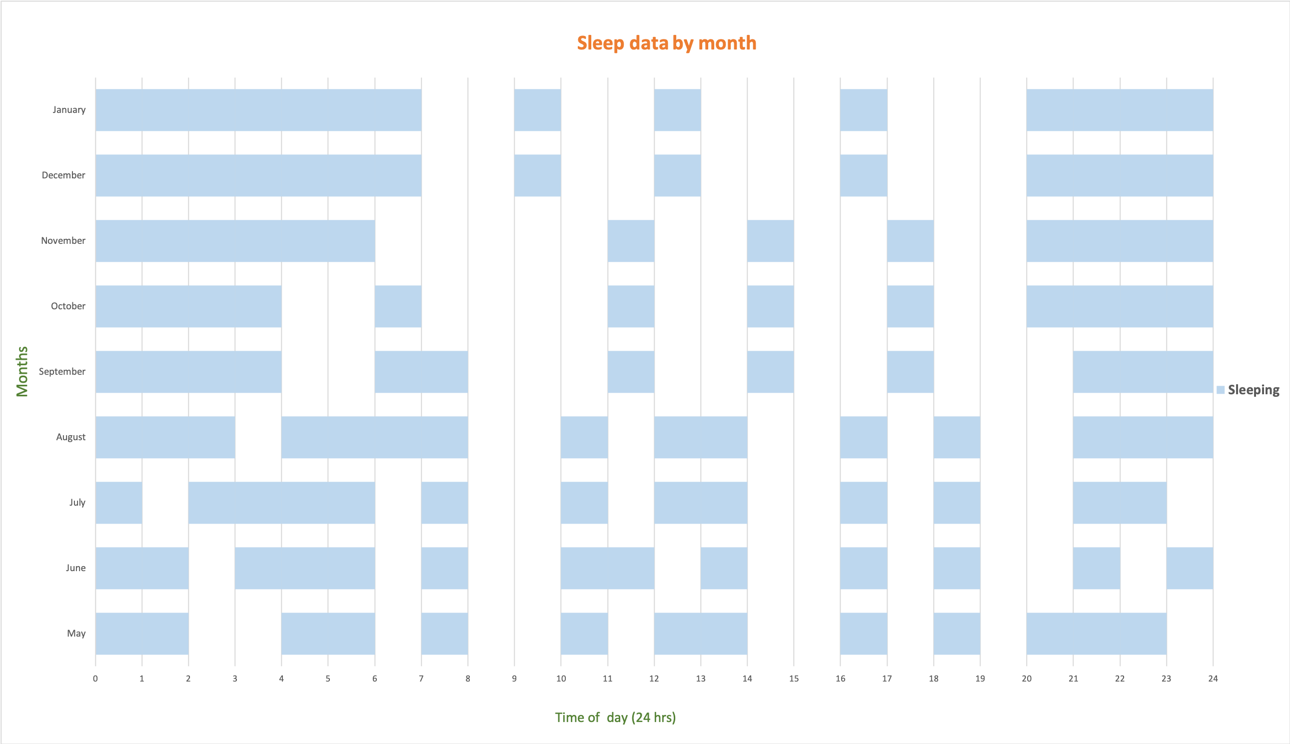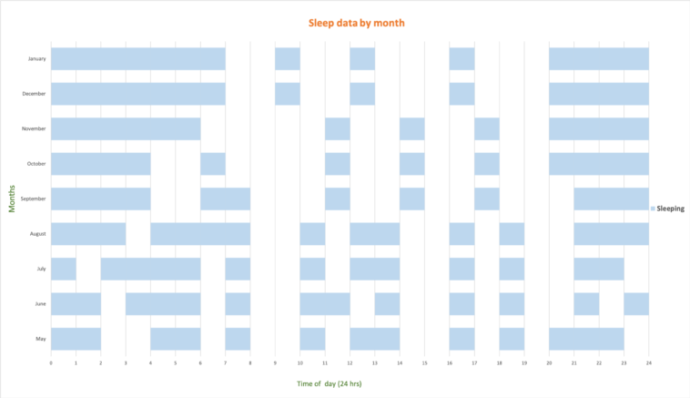 My son’s sleep pattern for last 6 months, he is 10 months old as of Feb 19′ [OC]