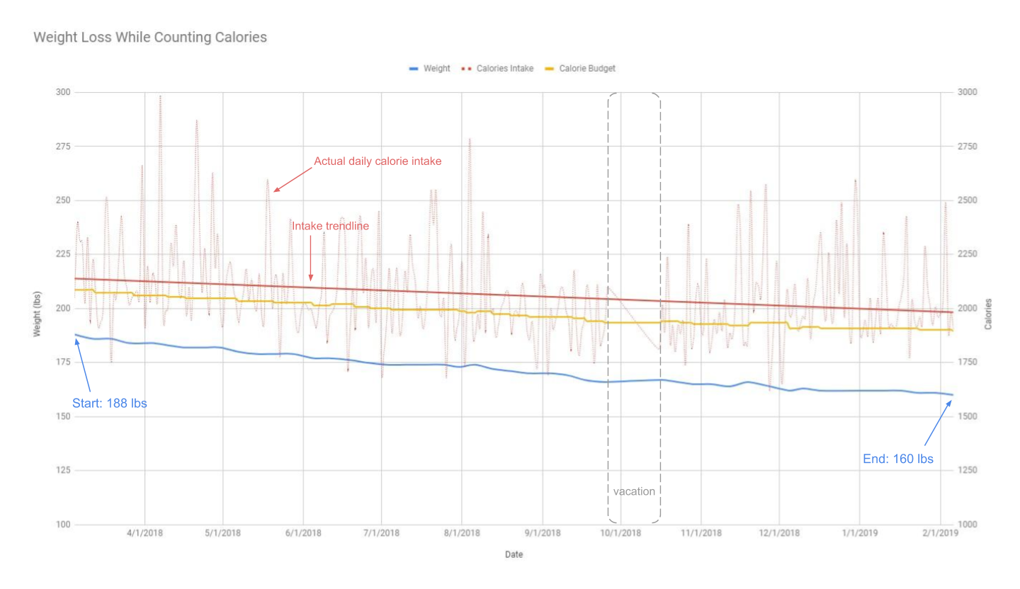 Data visualization : My Weight Loss While Counting Calories [OC]