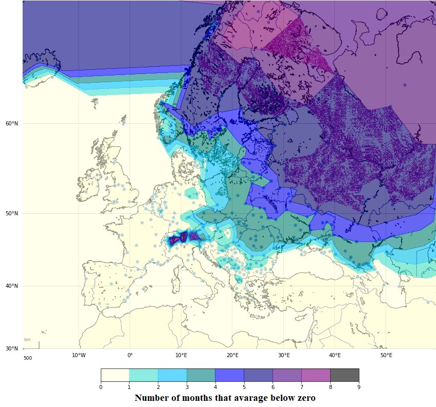 Number of months that avarage below zero in Europe [OC]