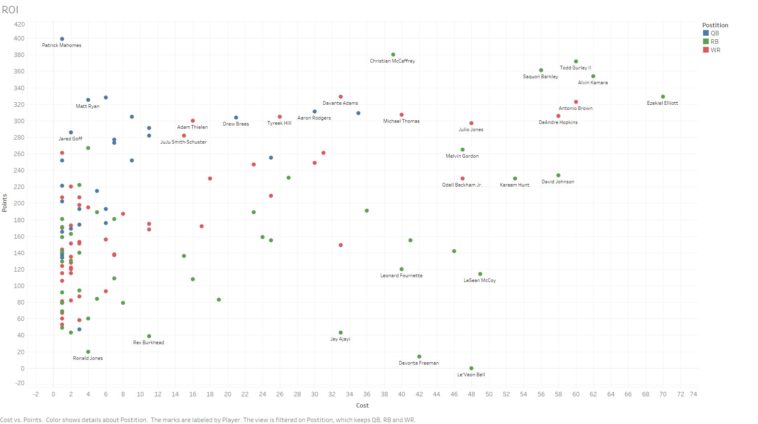 Data visualization : [OC] 2018 Fantasy Football Auction Draft ROI