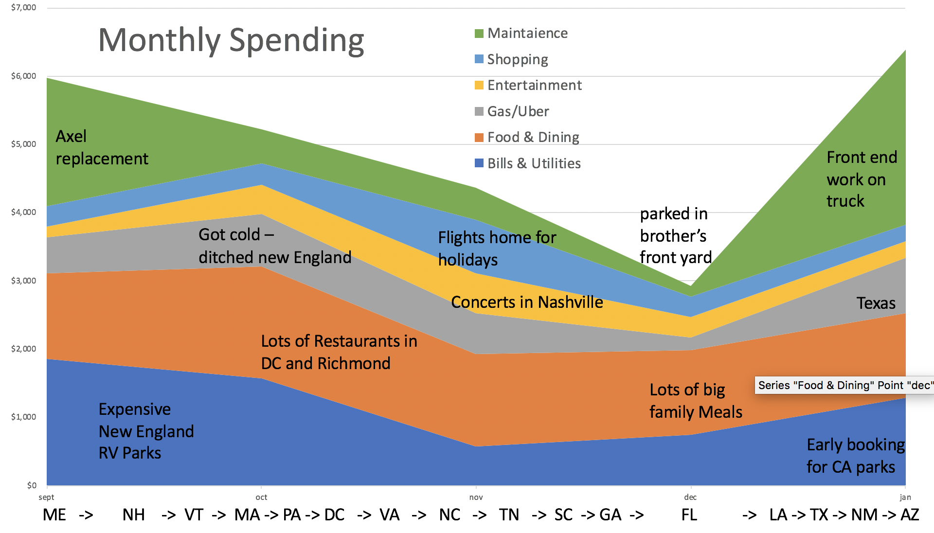 Data visualization : [OC] A breakdown of spending from 2 digital nomads’ first 5 months working from the road (in a camper) while exploring the US