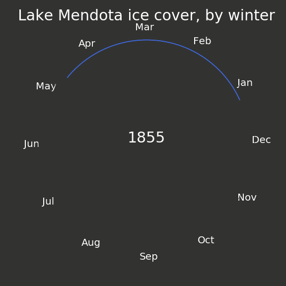 Data visualization : [OC] Another take on 160+ years of ice cover on Lake Mendota (try 2)