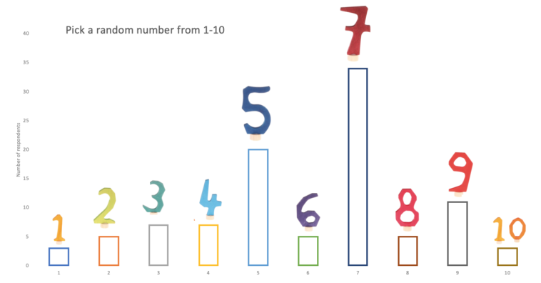 [OC] Asking 100 people for a random number from 1 to 10 (discussion)