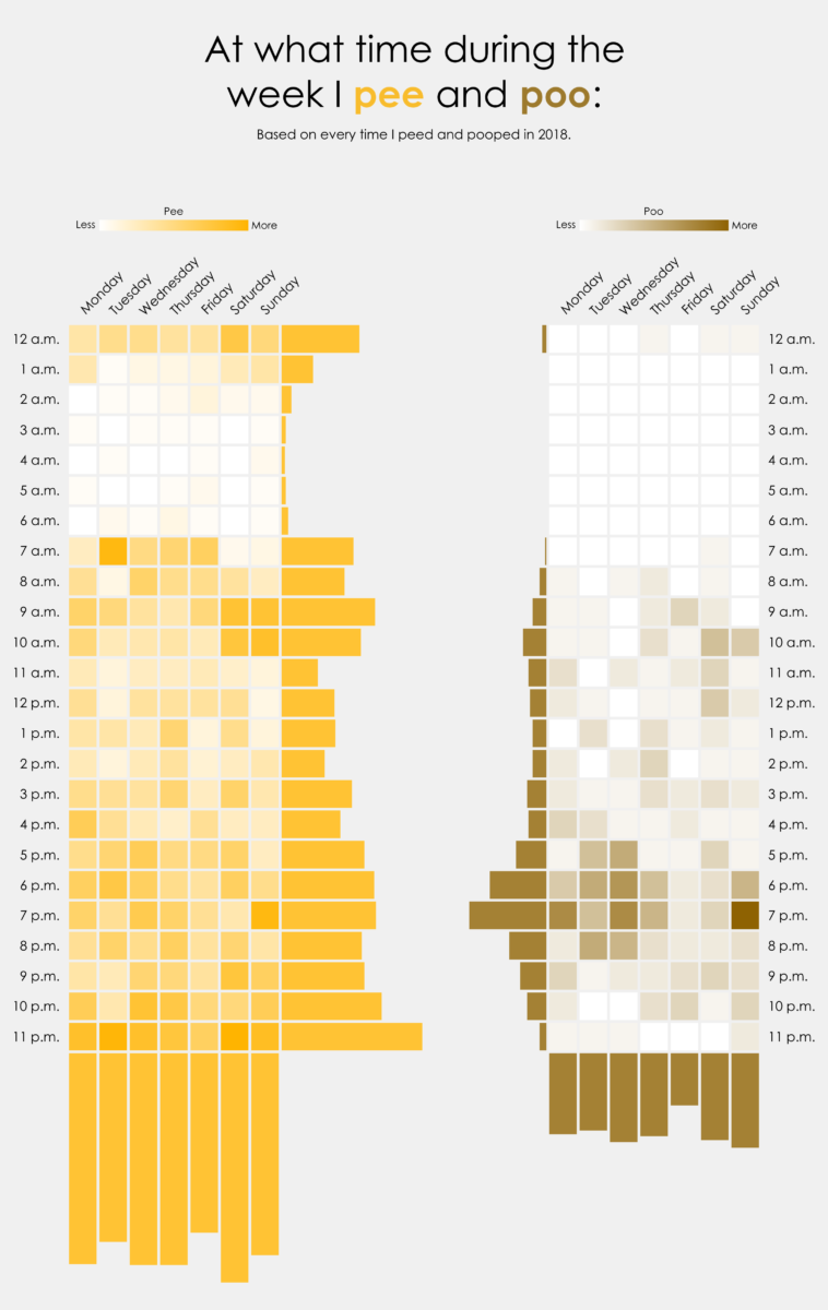 Data visualization : [OC] At what time during the week I pee and poo