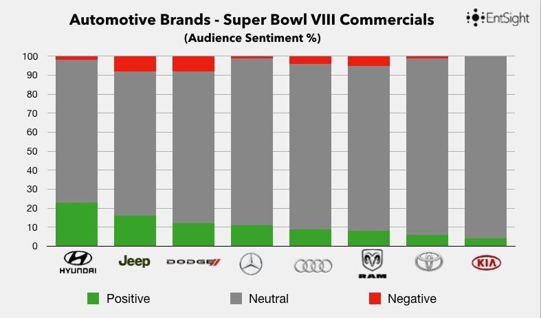 [OC] Automotive brands – Super Bowl Commercials (Audience conversation sentiment)