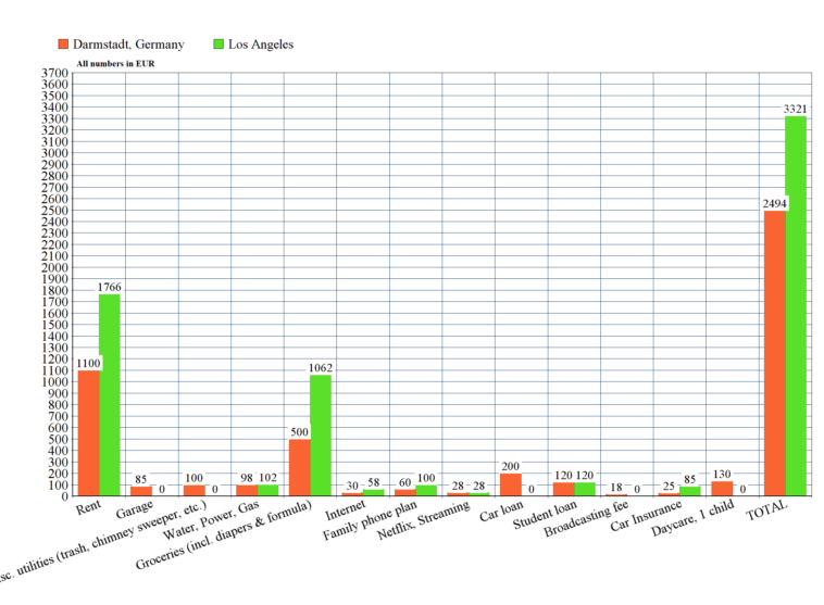 Data visualization : [OC] Cost of Living Comparison (Los Angeles / Germany)