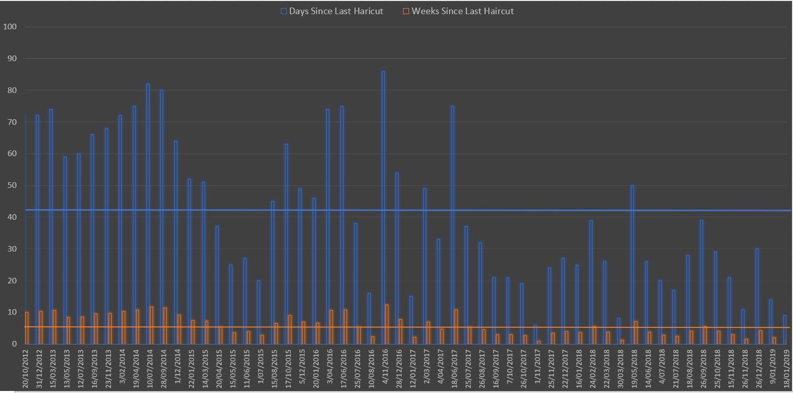 data visualization : [OC] Every haircut I have had over the past 6 years