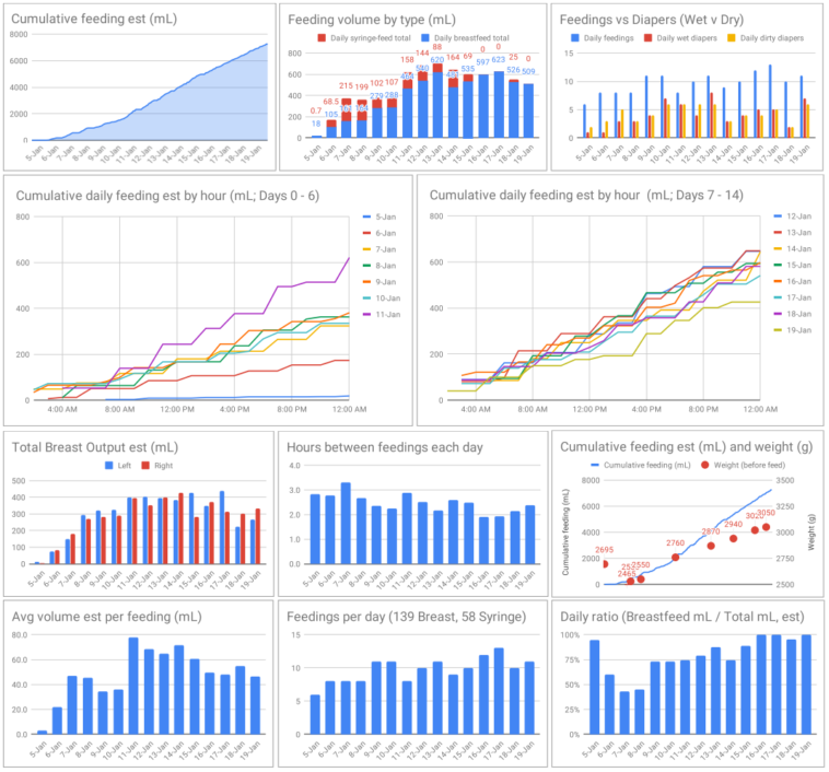 [OC] First 15 days of our baby’s life: our feeding log & analysis