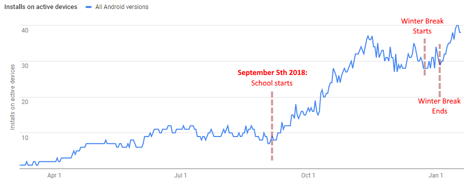 Data visualization : [OC] Graph of how many people have downloaded my physics calculator app.